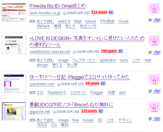 はてなブックマーク - 他人の切抜 / 2006年08月11日